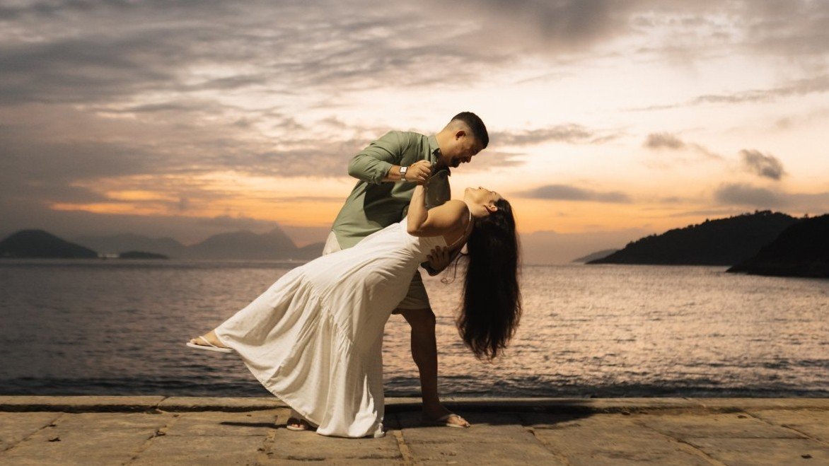 Nossa história começou de um jeito bem a nossa cara: em um sambinha na Lapa, entre risadas, música boa e aquela energia que só o Rio tem. Desde então, seguimos juntos, somando histórias simples e cheias de significado.